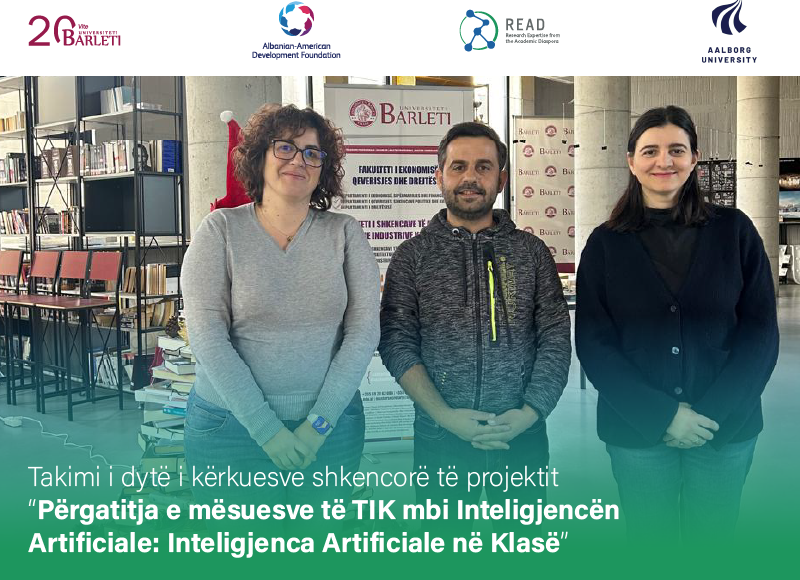 Më 27 dhjetor 2024, në ambientet e Universitetit Barleti, u zhvillua takimi i dytë i kërkuesve shkencorë të angazhuar në projektin “Përgatitja e mësuesve të TIK mbi Inteligjencën Artificiale: Inteligjenca Artificiale në Klasë”. Ky projekt, i financuar nga AADF në kuadër të programit READ, synon të rrisë kapacitetet e mësuesve të TIK për të integruar...