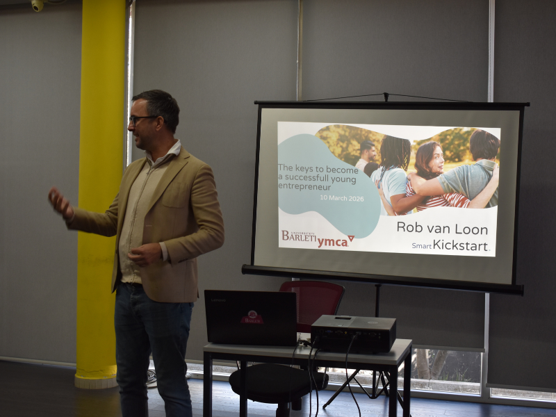 Gjatë aktivitetit, Rob Van Loon ndau me studentët përvoja reale nga puna e tij me sipërmarrës të rinj, duke ofruar këndvështrime praktike mbi mënyrën se si idetë mund të strukturohen, testohen dhe zhvillohen në modele të qëndrueshme biznesi. Diskutimi u mbështet edhe në librin e tij “The Journey to Young Entrepreneurship”, i cili trajton hapat dhe sfidat që shoqërojnë rrugëtimin drejt krijimit të një biznesi të ri.